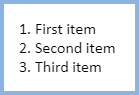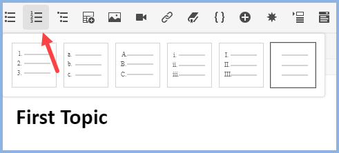 Click the Numbered List Styles icon on the toolbar and start writing your list or select existing content and then click the icon to convert the list.