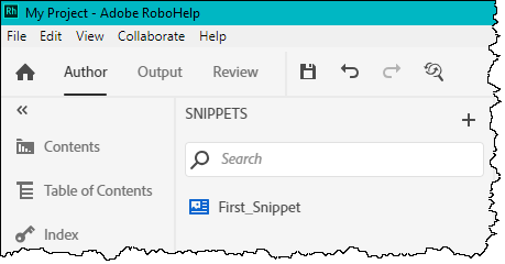 - Click the Snippet icon in the project toolbar on the left and any snippets already created will display alongside in the Snippet Panel.