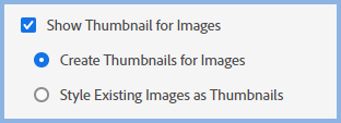 If you select the Show Thumbnail for Images check box, two further fields will be shown.