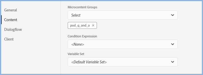 - Some microcontent such as that set up in the project in Microcontent > pod_q_and_a.